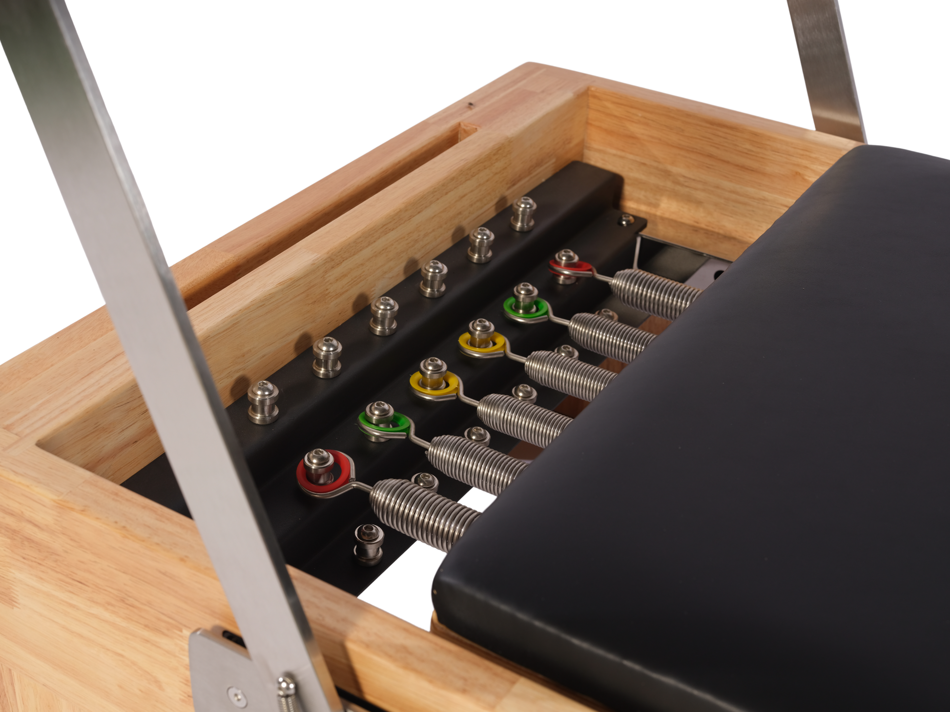 - Holdbart og æstetisk design: Det smukke egetræ gør både din reformer holdbar og giver elegance.